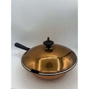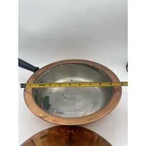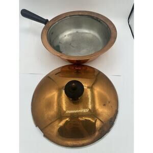 Vintage Copper Metal Sauce Pan With Lid And Black Handle 10” Diameter
