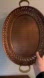 Elegant copper oval serving tray with leaf design. Perfect for decor or serving.