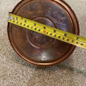 Enhance your kitchen with this elegant vintage copper tea kettle. Featuring a classic design and a sturdy wooden handle, it's perfect for brewing your favorite teas. The warm copper color adds a touch of sophistication to any home kitchen. It has a small dent on the side shown in the picture.