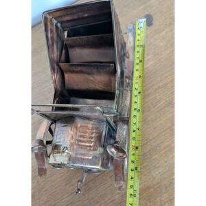 The product is a vintage copper tin metal car retro music box featuring the song "King Of The Road" by Sankyo, manufactured in Hong Kong. This decorative collectible item is a unique piece from the 1970s, showcasing intricate craftsmanship and a nostalgic design. Perfect for music box collectors or those who appreciate retro decor, this Sankyo music box offers a touch of old-world charm with its classic tune and vintage aesthetic.