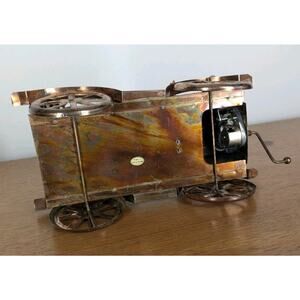 Vintage Copper Tin Metal Car Retro Music Box Sankyo Hong Kong "King Of The Road"