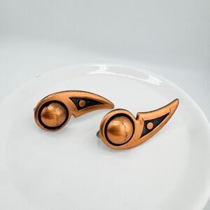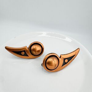 Vintage Copper Tone Abstract Earrings Black Enamel Geometric Post Art Deco