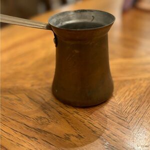 This vintage copper Turkish coffee pot is a unique addition to any collection. With its brown color and Turkish brand, it is sure to catch the eye of any coffee lover. Made from high-quality copper, this pot is not only beautiful but collectible. It is perfect for serving coffee or a bold decoration piece.
