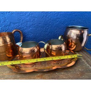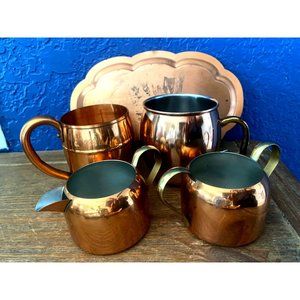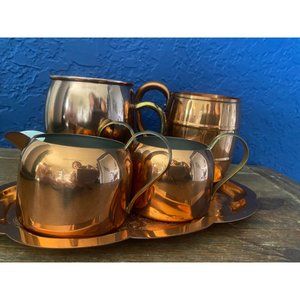 Vintage Copper set of plate and 2 cups and cream and sugar bowl