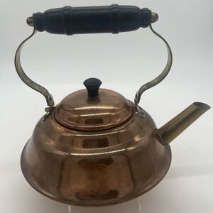 This vintage Coppercraft Guild teapot kettle is a true treasure for any collector or lover of copper metalware. Made in the USA, it boasts exceptional craftsmanship and durability that withstands the test of time. The teapot kettle is made of high-quality copper material, which adds to its unique charm and aesthetic appeal.