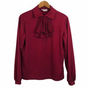 Vintage Copy Cats Womens Polka Dot Blouse Size Medium Detachable Jabot Red White