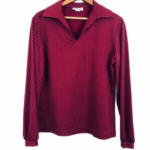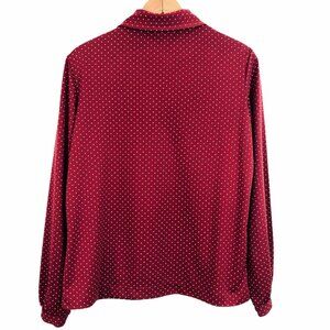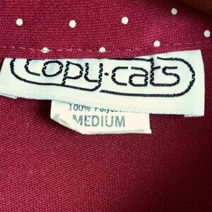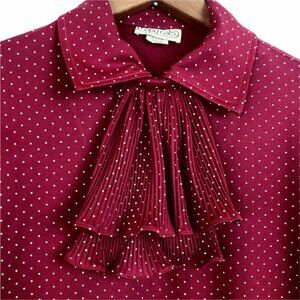 Vintage womens Copy Cats red and white polka dot blouse with detachable jabot. Pure retro vibe! Jabot detaches or is held in place by 2 snaps. 100% polyester.
