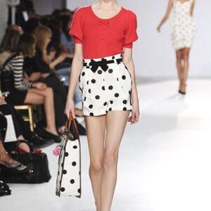 Rare designer Luella Bartley capsule collection about 2006 pleated mini skirt in a fun cherry print. Limited edition capsule collection skirt, new old stock with out tags, Size Medium