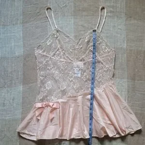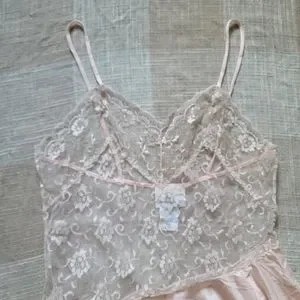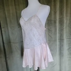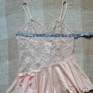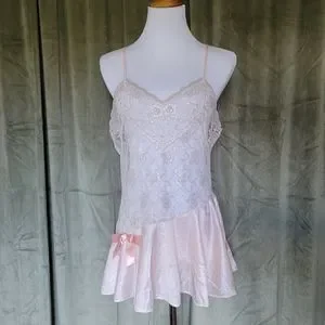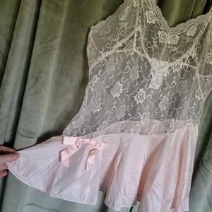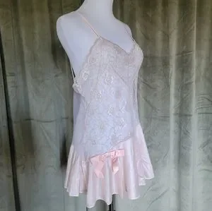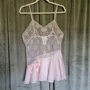 Vintage Coquette Girlypop Feminine Girly Balletcore Sheer Lace Pink Slip Dress