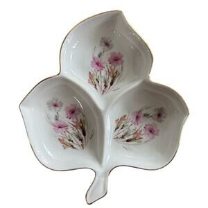Vintage Coquette Mitterteich Bavaria Germany Dish Floral Leaf-Shape Tray 3 part
