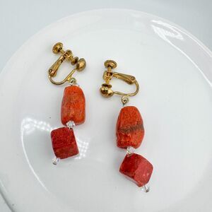 Vintage Coral Bead Earrings Gold Tone Screw Back Handmade Artisan 1960s MCM