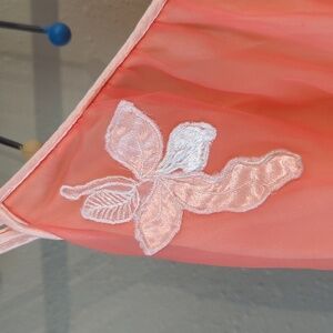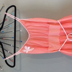 Rogers Sz 36 Vintage Coral Chiffon Fairy Dress Sheer Embroidered Strappy Y2K
