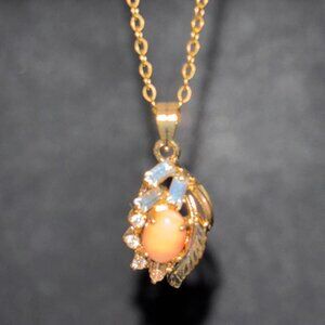 Vintage Coral Pendant Necklace, Dolphin Ore 18K Gold Electroplate