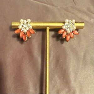 Elegant earrings with coral petals and pearl accents. Ideal for a vintage flair.
