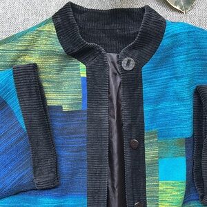 Vintage Corduroy Cardigan Jacket with Blue and Green shades and Pockets