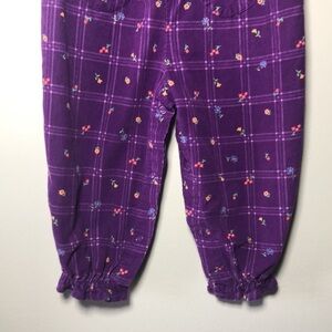 Excellent preowned condition. No visible flaws! All mine vintage overalls Baby toddlers size 24 months Purple floral print 100% cotton Corduroy fabric Machine washable Bubble hem with cinched elastic Snap leg closure Sleeveless Button closure upper back Such a sweet lock. Pair with a long sleeve white tee for fall! See photos for approximate measurements. Smoke free home. Make an offer! Ships next business day!