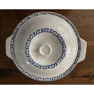 Vintage Corelle Blue Heart Stoneware 2 Handle Covered Casserole Dish 2 qt.
