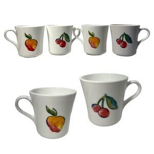Vintage Corelle Corning Mug Fruit Apple & Cherry Set of 4 USA Design 2 Sided