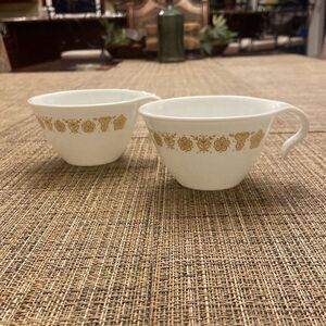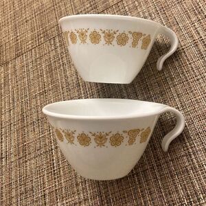 Vintage Corelle Corning Butterfly Gold Coffee Tea Cups w/ Hook Handles Set of 2