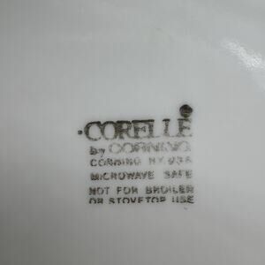 Brand markings: Stamped on bottom “CORELLE by CORNING, Corning NY USA, Microwave Safe, Not for Broiler or Stovetop Use”