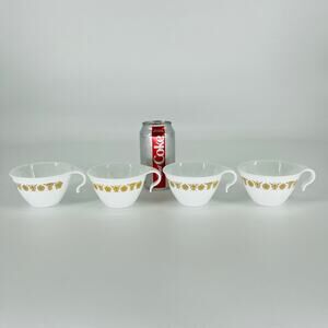 Vintage Corelle by Corning Butterfly Gold Flat Coffee Tea Cups - Set of 4 - GUC