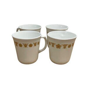 Vintage Corelle by Corning Coffee Mugs Cups Butterfly Gold Pattern Set of 4 USA