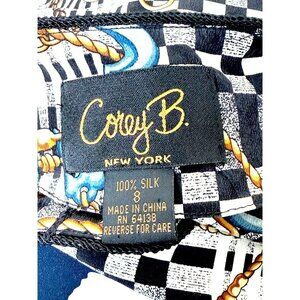 Vintage Corey B. 100% Silk Equestrian Blouse Black/White Checkered Women 8