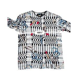 Lightweight and breathable 100% silk fabric with a vibrant checkered and chain print. Button-front design ideal for work or casual wear.