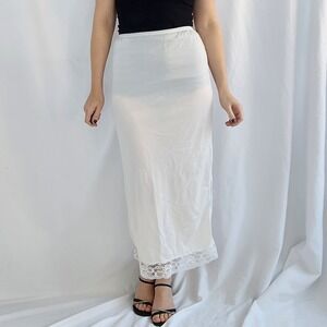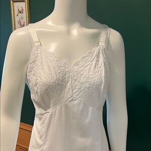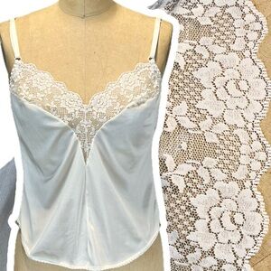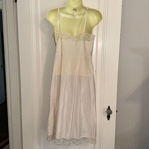 Vintage Corhan Noumair off white/cream nylon full slip with lace neckline & hem