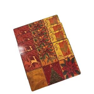 Vintage Cork Back Christmas Holiday Placemats Red Green & Gold • Set of 4