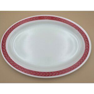 Vintage Corning Decor Dinnerware 12" Oval Platter With Red Autumn Bands Pyrex