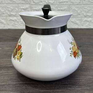vintage, corning ware, teapot, water pot, ceramic, spice of life design, 6 cup capacity, handle, lid, kitchen decor, functional use, #Cottagecore, #Bohemian, # Vintage, #Mid-Century
