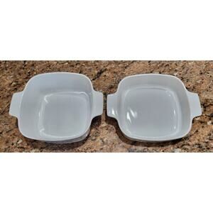 This vintage Corning Ware Blue Cornflower set of 2 casseroles is perfect for any mid-century modern kitchen. The square shape and floral pattern add a touch of style to your dinner table. The glossy finish and flat-bottomed design make it easy to clean and cook with.