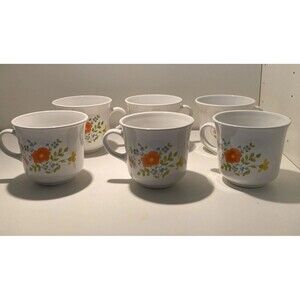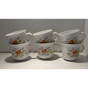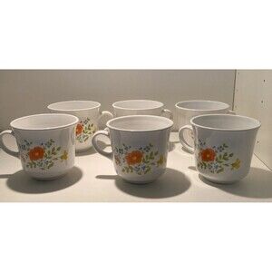 Vintage Corning Ware Corelle Wildflowers Coffee Tea Cups Mugs Set Of 6 USA