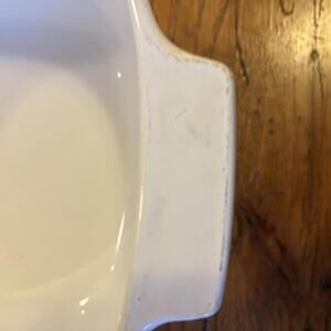 Made in the United States 1972-1987 and featuring a glossy finish, this square pan measures 10x8x4 inches and has a ceramic coating surface. It is suitable for use in electric and gas ovens, as well as microwave ovens.