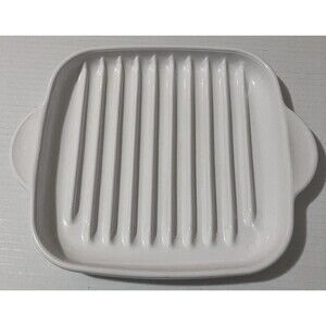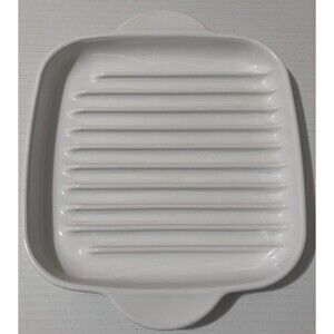 The Vintage Corning Ware White Coupe Glass Microwave Rack is a stylish and practical kitchen gadget perfect for cooking bacon or other snacks in the microwave. Made by trusted brand CorningWare, this rack is crafted from durable glass in a sleek white color. With an item length of 11 inches, this microwave rack is designed to fit securely in the microwave to help evenly cook your favorite foods while keeping them safe from splatters. Upgrade your cooking routine with this retro-inspired and functional addition to your kitchen.