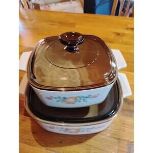 Vintage Corningware Abundance 5 Piece Casserole Set Pyrex Lids ~ 2L, 1L,1.5L
