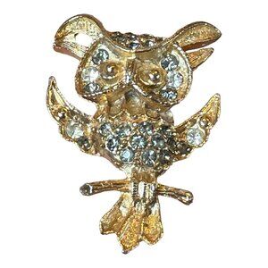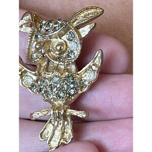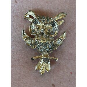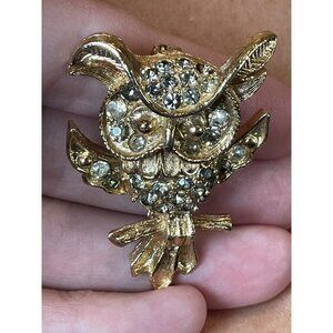 Vintage Coro Brooch Owl Rhinestone Gold-Tone Flying Wings Out Rare