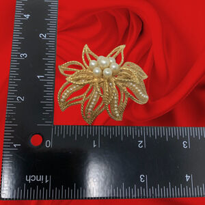 Vintage Coro Craft Faux Pearl Twisted Rope Dimensional Flower Pin Brooch MCM
