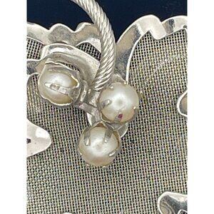 Vintage Coro Double Mesh Silver Tone Leaves Faux Pearl Accents