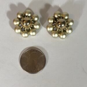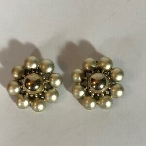 Vintage Coro Earrings, Gold Tone Orbit Clip On Round Flowers Matte Shiny
