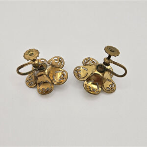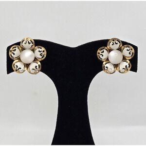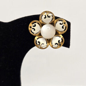 Vintage Coro Earrings Goldtone Moonglow Screwback White Enamel Flower Retro Twee