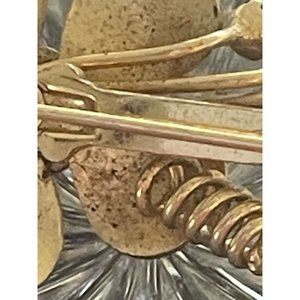 This offer is for a vintage Coro signed gold tone key brooch adorned with an emerald green enameled Shamrock. This brooch is in great condition with one small stone missing around center and the clasp is tight.