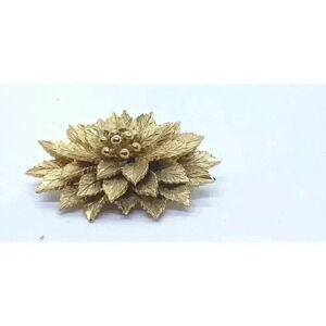 Vintage Coro Gold Brooch Flower Realistic Dimensional Textured Big RARE