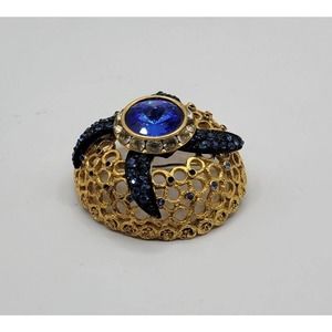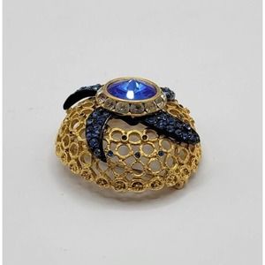 Vintage Coro Gold Tone Blue Rhinestone Dome Shaped Brooch Pin