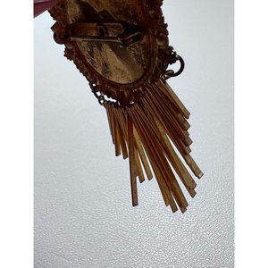 Vintage Coro Gold tone Brooch with Painted Couple and Metal Fringe, 1930's