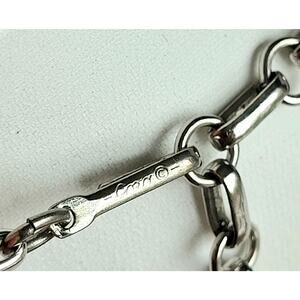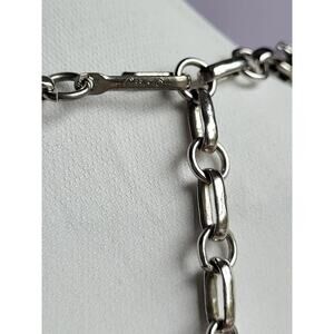 Vintage Coro silver tone necklace from the 60s, in modernistic style featuring chevron shaped links with raised bead accent. Overall size 17 inches including extender chain. J-hook clasp signed Coro.