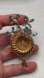 An absolute stunner of a brooch, this piece features a gold plated ribbed circle or wreath holding four stems of aqua blue rhinestone flowers with clear chaton centers. The aqua navettes have all been replaced as over time they had darkened and lost their sparkle. The plating on this brooch is in excellent condition! So retro modern in style! The brooch measures 3 1/4 by 2”. For all its size, it is light in weight and easy to wear. Signed Coro Pegasus.