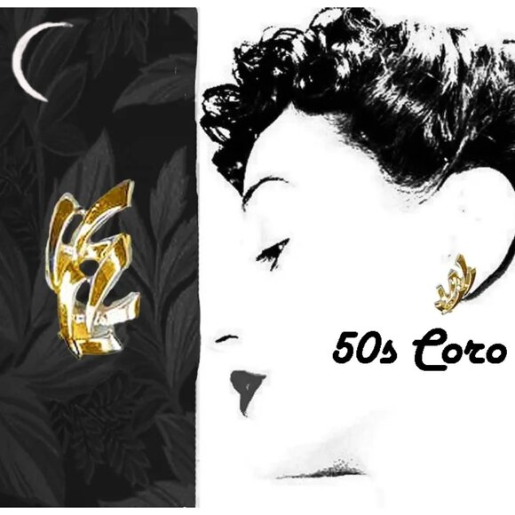Vintage Coro Pegasus Clip On Earrings MCM 50s Abstract Clipons