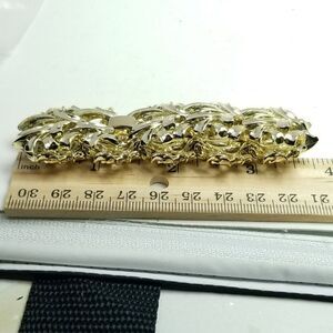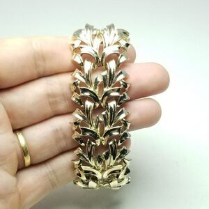Vintage Coro Pegasus Wide Gold Tone Panel Bangle Bracelet, Stacking Signed